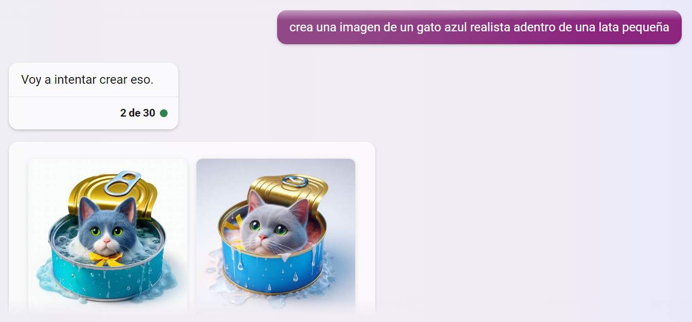 Puedes generar imágenes sin salir del chat y usando prompts en español. La Inteligencia Artificial generará 4 opciones. Si ninguna te satisface, puedes generar más.
