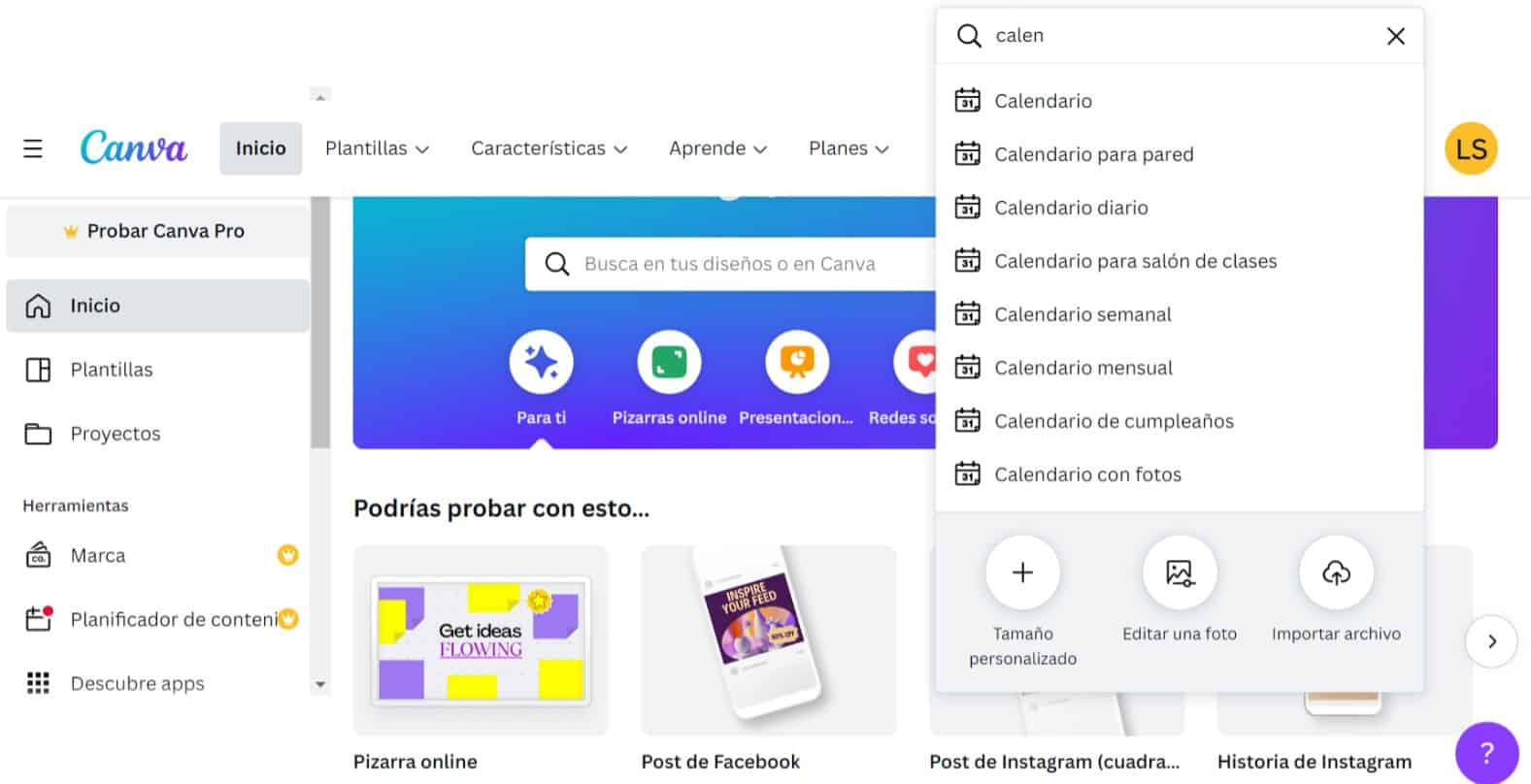 #1. En la barra de la izquierda verás una coronita seguida de la leyenda Probar Canva Pro. Debes hacer clic ahí.