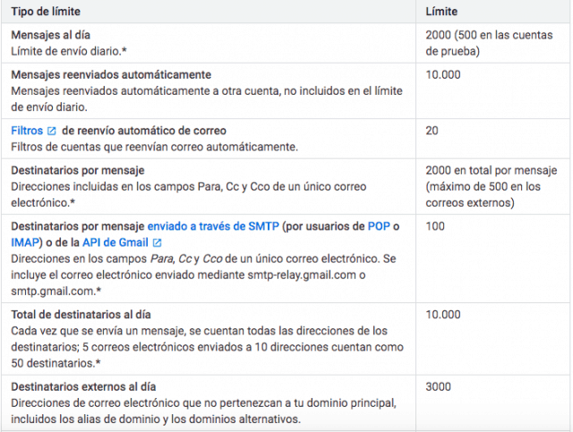 En el caso de contar con una cuenta de empresa, este límite asciende a 2000 correos diarios.