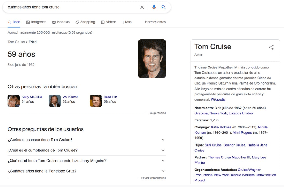Por ejemplo, la intencionalidad de una búsqueda como “cuántos años tiene Tom Cruise” es claramente informativa.