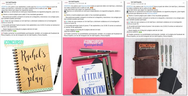 Por ejemplo, la marca de material de oficina Uni-ball desarrolla sorteos semanales mostrando sus productos.
