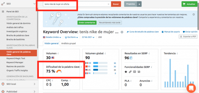 Te será de gran ayuda contar con una herramienta como SEMrush porque además calcula cuál término es más fácil de posicionar.