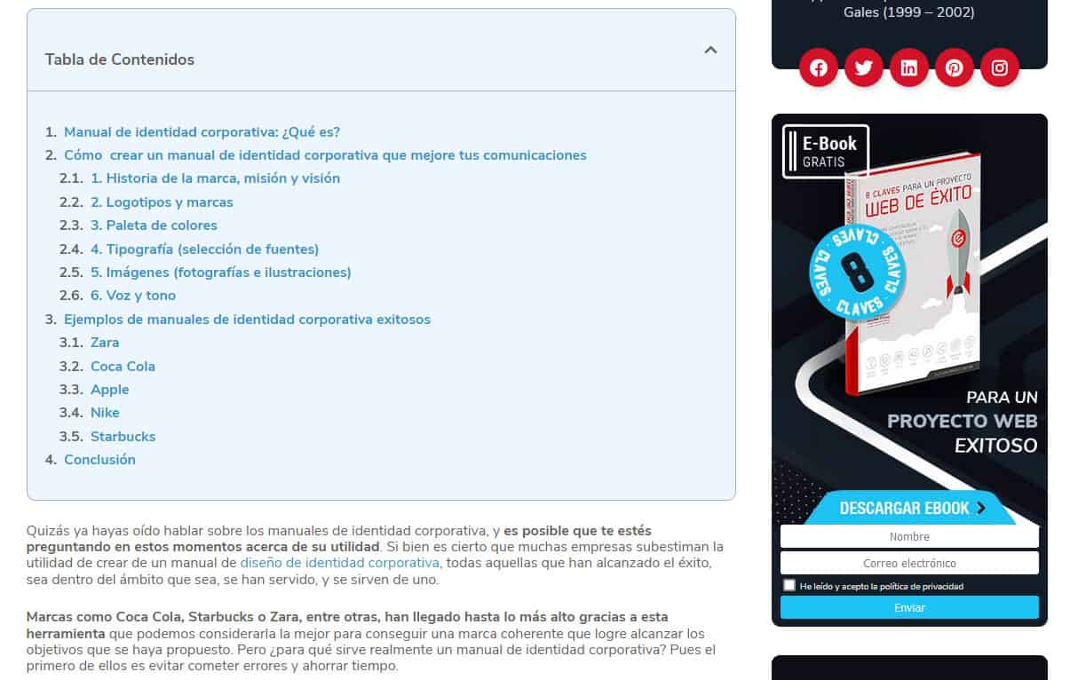 De esta forma, ofrecerás a tus lectores poder identificar las diferentes partes del contenido y poder acceder a las mismas con un solo clic, ya que cada opción del menú generado al comienzo del artículo, se corresponde con las etiquetas h2,h3, h4, etc de tu artículo.